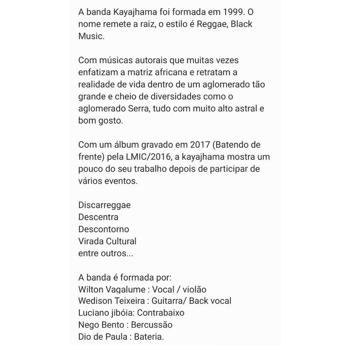 Participa de projetos musicais de expresso na cena cultural mineira, como percussionista na banda Kabalions e na banda Desgarrados regida por Paulo Santos (Uakti), e leva o melhor dos ritmos na Grande BH.