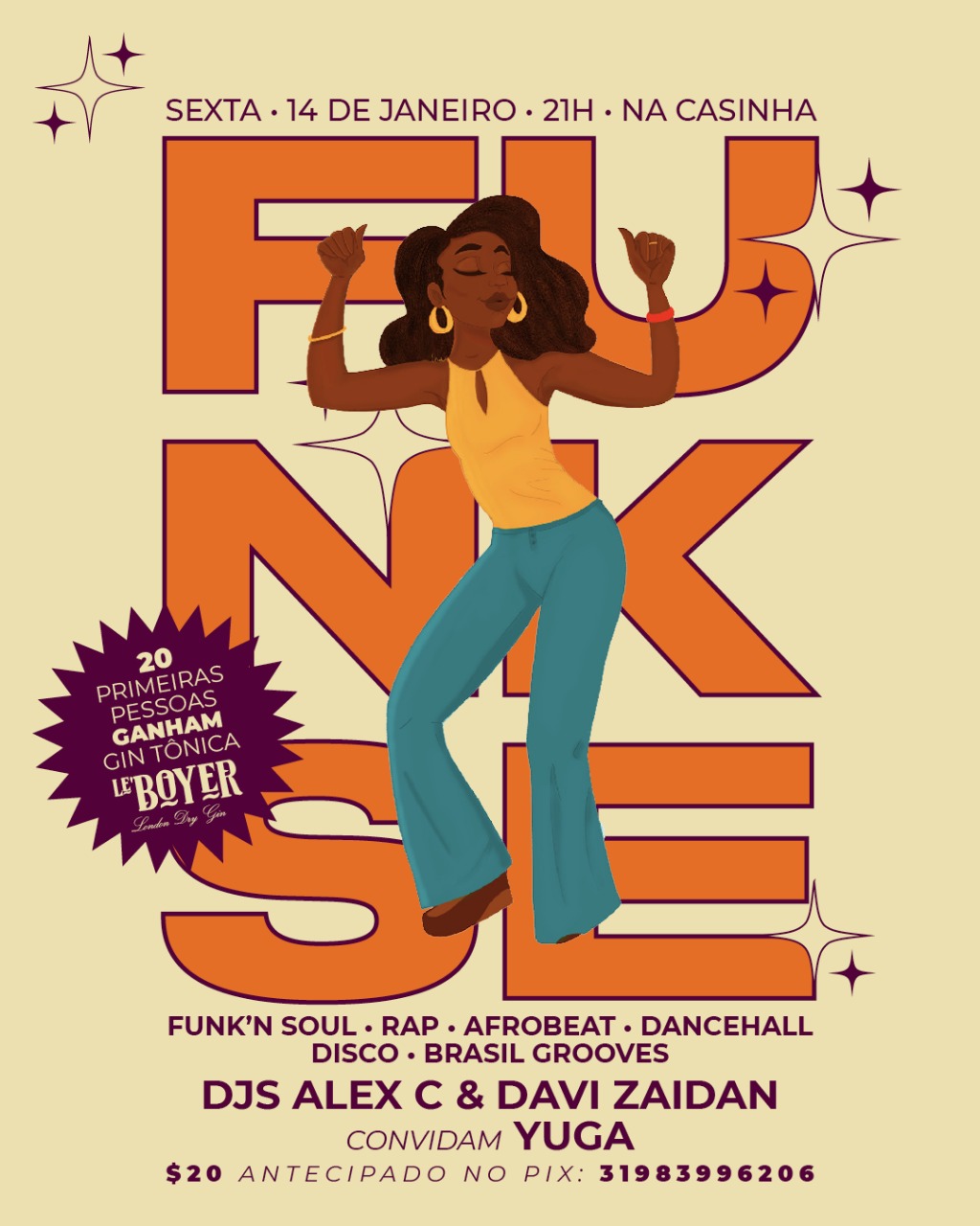 E ainda teremos doses grátis para os 20 primeiros que chegarem de Gin Tônica da "Le Boyer London Dry Gin" pra deixar a pista ainda mais animada!